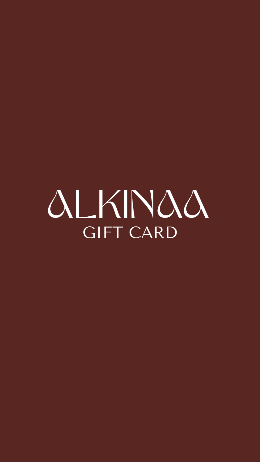 Delivered instantly by email, Alkinaa Gift Cards are redeemable across all collections online.